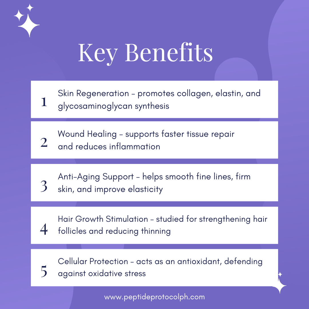 Aging leaves its marks — from fine lines to thinning hair and slower recovery. Copper Bloom, powered by the peptide GHK-Cu, is studied for its remarkable ability to signal regeneration. From supporting collagen and elastin production to promoting hair vitality and skin repair, it’s designed to help your body restore what time wears down.