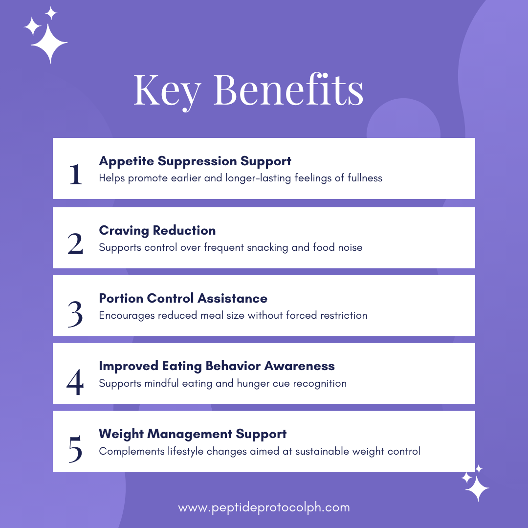 Crave Control features Cagrilinatide, a peptide studied for its powerful effects on appetite regulation. Designed to work on the brain’s hunger and satiety centers, it helps reduce persistent cravings and emotional eating, giving you back control over food decisions without constant willpower battles.