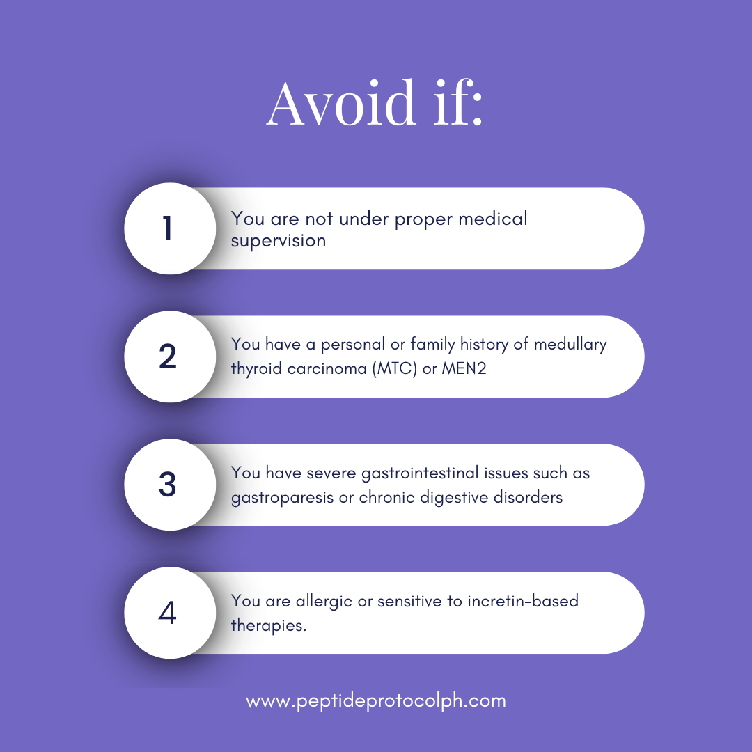 While Tirzepatide shows great promise in research for weight management and metabolic support, it is not for everyone. Responsible use means knowing when it should be avoided.